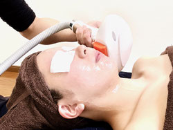 マシン先端に付いているミクロ単位のレーザーカットダイヤモンドチップを用いて肌表面を吸引しながら滑らせ、古い角質を除去し 肌本来の自然な代謝リズムを整えます。皮溝に入り込む可能性のある酸化マグネシウム・植物パウダー・薬剤を使用しない為、肌に負担がなく敏感肌の方にもお薦めです!!
